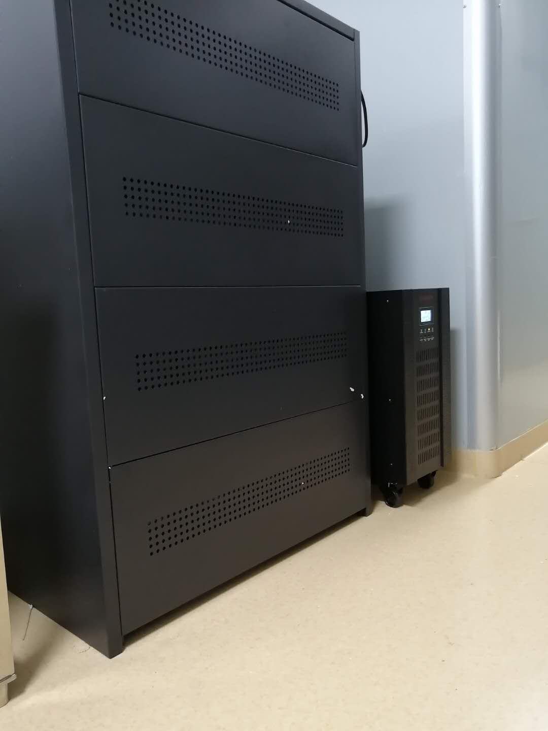 東莞南城葉子醫(yī)療美容院,為給醫(yī)院的各類儀器提供穩(wěn)定安全的用電保障,根據(jù)院方的要求及醫(yī)療器械的特性,工程人員給醫(yī)院配置了的主機(jī)為3C20KS高頻機(jī),三進(jìn)單出380V輸入 220V輸出。配置16節(jié)12V100AH電池。