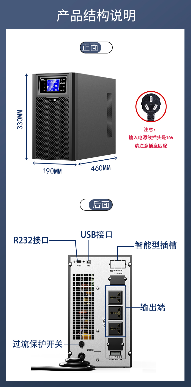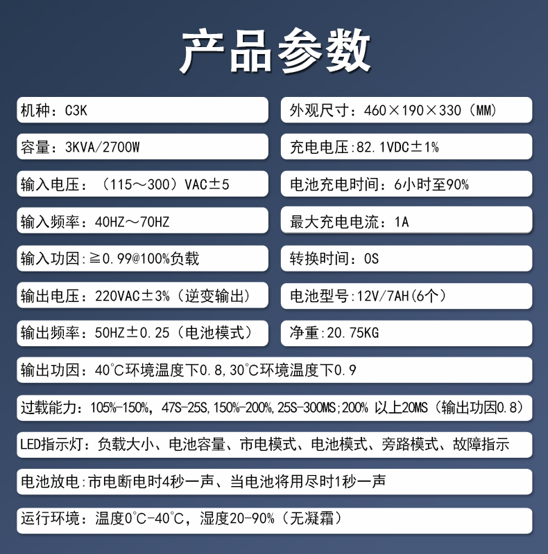 【功 率】3000VA/2700W 主機尺寸:450*190*330mm