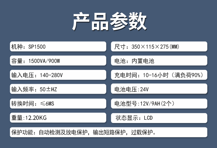 【品 牌】山埔 【型 號】SP1500 【功 率】1500VA/900W