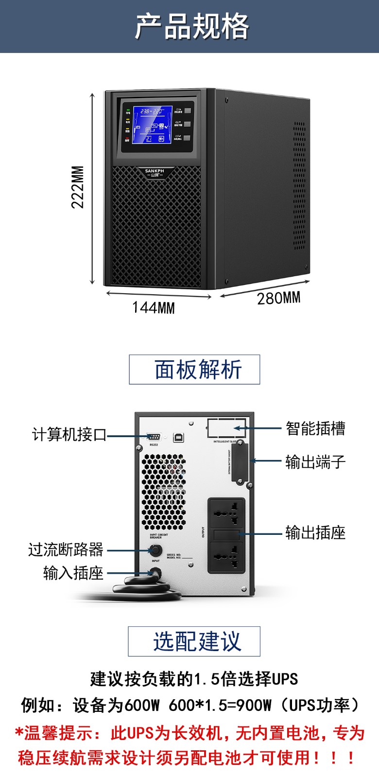 【ups尺寸】:282*145*220(MM) 需外接電池36V