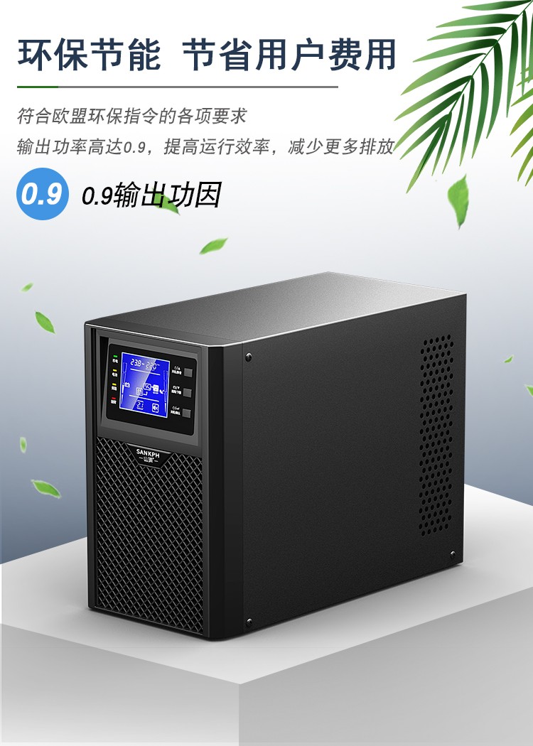 3.適應(yīng)各種電網(wǎng)環(huán)、輸出功因0.9,適合負(fù)載的發(fā)展趨勢(shì),實(shí)現(xiàn)更強(qiáng)的帶載能力,整機(jī)效率高達(dá)90%,降低UPS的電力耗損,節(jié)約客戶的成本。