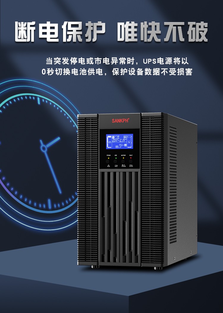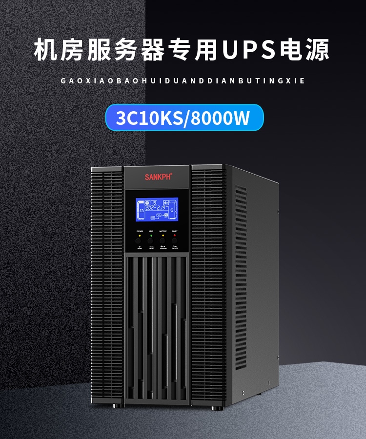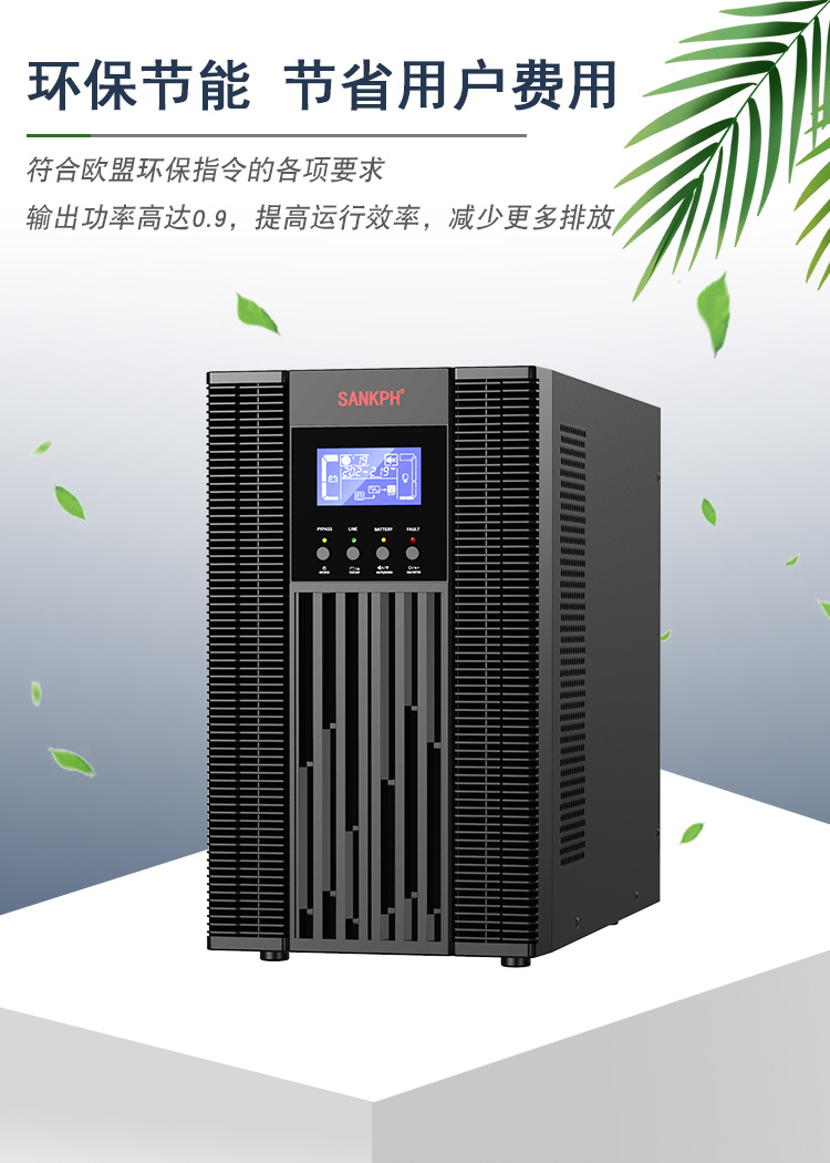 3.適應(yīng)各種電網(wǎng)環(huán)、輸出功因0.8,適合負載的發(fā)展趨勢,實現(xiàn)更強的帶載能力,整機效率高達90%,降低UPS的電力耗損,節(jié)約客戶的成本。