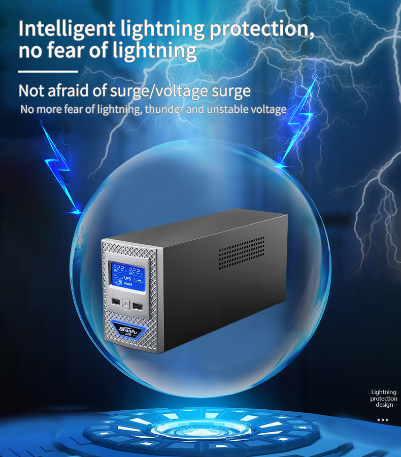 BRAND:MODEL: SP1000 power 1KVA600W built-in 12V9AH lead-acid maintenance-free battery one year, the rest three years. DC VOLTAGE DC 24V input voltage 140-280VAC (wide voltage range) output voltage 210-230VAC (high precision voltage) SHANPU SP1000 backup uninterruptible power supply are designed and manufactured with international technology, it has the advantages of high efficiency, beautiful appearance, advanced and reliable performance and so on. The microcomputer digitally controlled uninterrupted 220-volt AC power supply system is a high quality electronic product specially designed for users of computer systems and precision electronic instruments. In addition to ensuring a stable AC output, it can also be used to generate electricity immediately in the event of a sudden power failure in the AC market or when the instantaneous voltage is too high or too low to continue to supply the load, the transient high-voltage spikes and high-frequency noise signals on the power line are effectively suppressed and purified to the lowest level, so that the stored data and software programs in the computer system are not affected, to ensure the normal operation of computer systems and precision electronic instruments. Product features: SANKPH MT1000 UPS has super voltage-stabilizing function, suitable for people in areas with unstable voltage. Using Motorola CPU control; higher precision; input three-stage voltage-stabilized range 140-280VAC; 9AH Battery 1 Section; Standby Time 15 minutes (single PC) ; switching time ≤8ms; overload, overload, short circuit, shutdown automatic charging; temperature 0 °c-40 °c; Led and sound and light alarm. Product features: perfect and elegant design, adapt to a variety of high-end office areas improve the battery over-discharge protection function, so that users have no worries intelligent automatic sound and light warning function, so that users can safely and efficiently use the advanced automatic constant voltage, constant current charging function, can extend the battery life automatic frequency regulation, automatic short-circuit protection, output overload automatic protection using the United States high-standard UPS electronic integrated circuits and application of microcomputer control technology, when the city power outage directly start UPS, convenient for users to use the city power input high and low voltage automatic protection, while providing continuous stable power supply for users load using the original high-quality maintenance-free valve Lead acid battery, the electric power is durable and stable, and the operation reliability of UPS is improved effectively. Unattended function, battery under-voltage automatic shut-down protection, power back to normal automatic start.